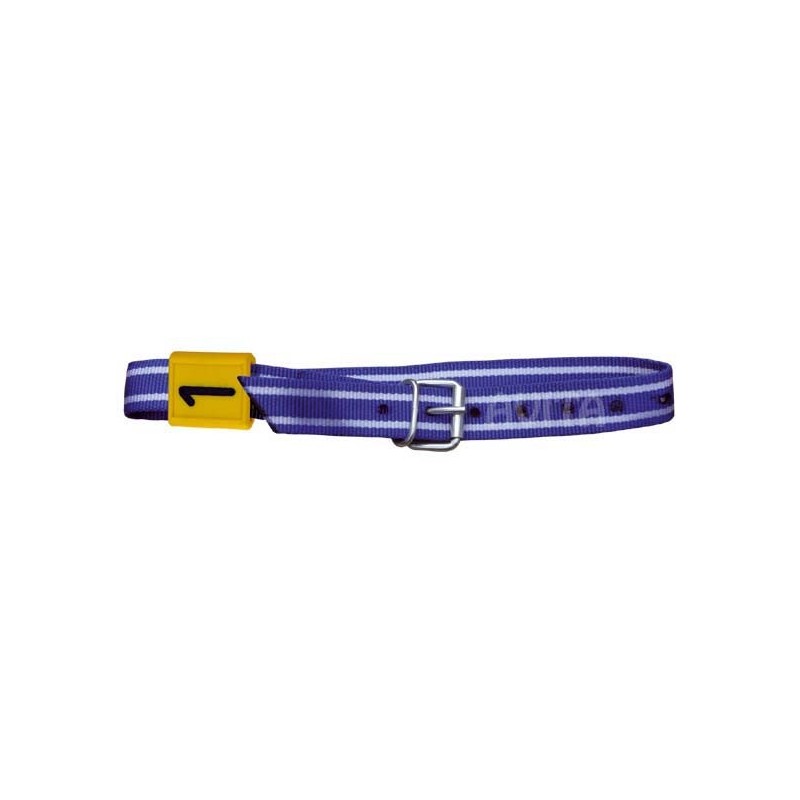 A practical solution for clearly marking animals, equipped with a buckle and buckle for secure fastening. A solid 40 mm wide tape ensures durability and effective animal identification. The collar tape is 2.5 mm thick and has a grammage of 51.7 g/m2. The buckle is a metal clasp that allows you to quickly and easily fasten and unfasten the collar. The buckle ensures that the collar is securely held around the animal's neck, while allowing it to be quickly removed when necessary. The buckle is an element used to adjust the length of the collar. Thanks to the buckle, you can easily adjust the collar to different sizes of the animal's neck, which ensures a comfortable fit and safe wearing.