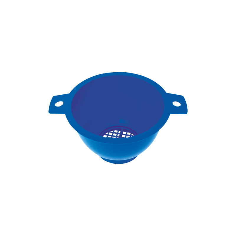 Small plastic strainer, diameter 95 mm. It has a pressure that prevents the filter from moving.