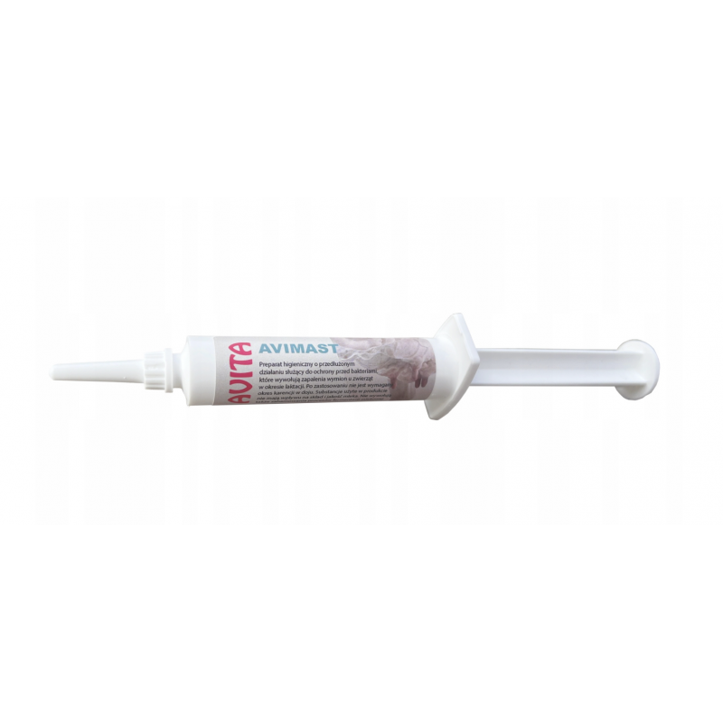 AviMast to preparat higieniczny o przedłużonym działaniu, zaprojektowany specjalnie do ochrony zwierząt przed bakteriami wywołującymi zapalenie wymion w okresie laktacji. Dzięki skuteczności AviMast, nie ma potrzeby okresu karencji po zastosowaniu. Składniki nie wpływają na skład ani jakość mleka, ani nie hamują fermentacji mlekowej. AviMast to nie tylko preparat higieniczny, ale także produkt zapewniający maksymalną ochronę przed bakteriami powodującymi zapalenie wymion. Dzięki swojej skuteczności i bezpieczeństwu, jest doskonałym wyborem dla hodowców dbających o zdrowie i wydajność stada, wspierając ich w dostosowaniu się do przyszłych regulacji dotyczących stosowania antybiotyków. Korzyści: - Ograniczenie kosztów związanych z karencją w sprzedaży mleka - Utrzymanie stałej, wysokiej wydajności mlecznej stada - Ograniczenia, a nawet całkowicie odstąpienie od antybiotyków Sposób użytkowania: Jedna tubostrzykawka na jeden strzyk, stosowana bezpośrednio po doju. Użyć od 3 do 4 tubostrzykawek przy kolejnych dojach. Okres ważności: 24 miesiące. Skuteczność: Najlepsze efekty uzyskuje się stosując AviMast przy pierwszych objawach zapalenia wymion. Można go także stosować profilaktycznie, zmniejszając ilość komórek somatycznych. Skład: Aktywne cząsteczki nanosrebra, Lizozym buforowany kwasem ortofosforowym, Nizyna, Woda demineralizowana.