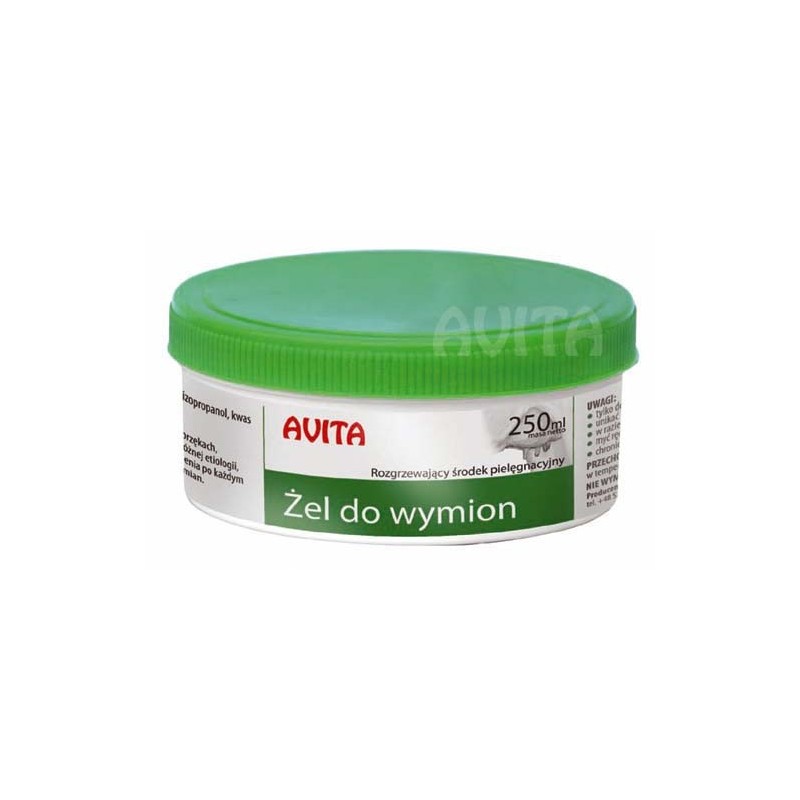 A care product with a gelatinous consistency with vegetable oils (including turpentine, eucalyptus) and isopropyl alcohol with a warming effect. It restores the elasticity of the udder gland, reduces intercellular tension in the udder tissues, and facilitates milk secretion. It does not contain antibiotics or toxic substances and does not require a withdrawal period. How to use: Evenly spread a small amount of AVITA gel, massaging the udder after each milking until the changes disappear.
