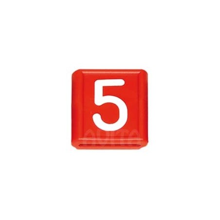 The identification number is a red label measuring 48 mm x 59 mm, with a white number on an intense red background. The set contains 10 pieces, which makes it a practical solution for clearly marking various elements or animals in a legible and permanent way.