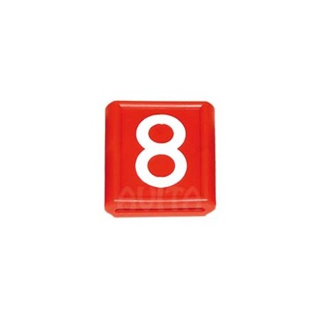 The identification number is a red label measuring 48 mm x 59 mm, with a white number on an intense red background. The set contains 10 pieces, which makes it a practical solution for clearly marking various elements or animals in a legible and permanent way.