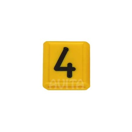The identification number is a yellow label measuring 48 mm x 59 mm, with a black digit on an intense yellow background. The set contains 10 pieces, which makes it a practical solution for clearly marking various elements or animals in a legible and permanent way.