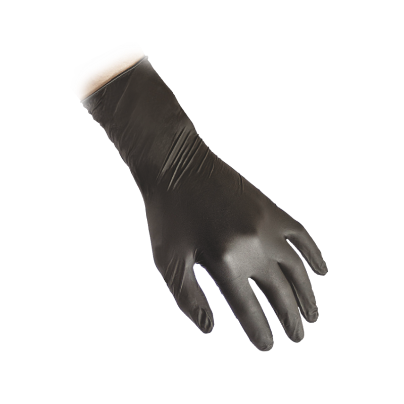 Rękawice nitrylowe bezpudrowe bardzo długie i bardzo mocne, czarne (N79PLUS) czarne, rozm M