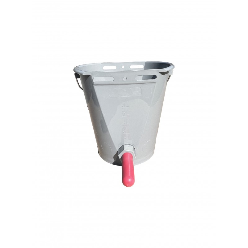 Wiaderko do odpajania cieląt - wykonane z tworzywa sztucznego. W zestawie smoczek z zaworem. Wiaderko przystosowane do mocowania na stanowisku. Pojemność 10 litrów.