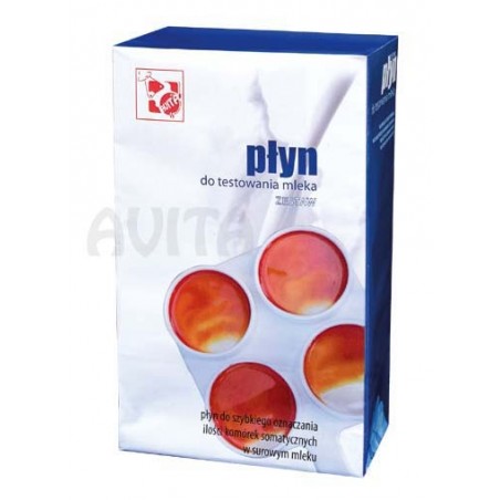 Zestaw do testowania mleka, zawierający wszystko, co potrzebne do skutecznej diagnostyki. W skład zestawu wchodzi litrowa butelka AvitaTestu, płytka do testowania oraz ściereczka do wymion. Ściereczka do wymion - Przed testowaniem wymion należy je oczyścić, możemy to zrobić za pomocą ściereczki maczając ją np. w AvitaFoam. Specjalny materiał ściereczki ułatwia usuwanie zanieczyszczeń ze strzyków, wspierając tym samym utrzymanie czystości i higieny. AvitaTest - Innowacyjny płyn diagnostyczny umożliwiający szybkie oznaczenie ilości komórek somatycznych w surowym mleku, już od poziomu 100 tysięcy. Ten zaawansowany produkt umożliwia niezależną kontrolę oraz ocenę stanu zdrowotnego wymion, wyprzedzając ewentualne widoczne zmiany jakościowe w mleku, takie jak obecność kłaczków, krwi czy wodnistość. Płytka do testowania mleka - Dzięki podziałowi na cztery części umożliwia równoczesne i szybkie pomiarowanie każdej ćwiartki w jednym badaniu. Sposób użycia: należy nałożyć niewielką ilość mleka, najlepiej pierwsze strugi, na poszczególne obszary płytki dedykowane dla każdej ćwiartki. Następnie dodajemy płyn testowy, na przykład AvitaTest, w proporcji 1:1 do ilości mleka. Po wymieszaniu, oceniamy konsystencję uzyskanej cieczy. Rzadka konsystencja wskazuje na zdrowe mleko. Im płyn jest gęstszy, przypominając galaretkę, tym poważniejsze jest zapalenie.