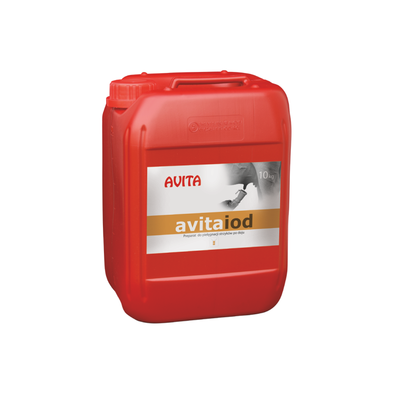 Yхаживающий препарат на базе йода для послеудойной гигены сосков. Avitaiod является комбинацией активного йода, салициловoй кислоты и увлажняющих средств для вымён. Благодаря идеально подобранному составу Avitaiod удерживается долгое время создавая на соске защитный слойю Предохраняет от неблагоприятного воздействя окружающей среду и высыхания, вместе с тем придавая эластичность кожи сосков. Продукт готовый к применению.