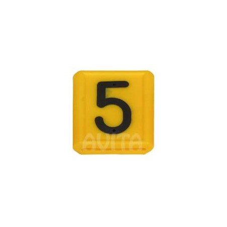 Идентификационный номер представляет собой желтую этикетку размером 48 мм x 59 мм с черной цифрой на насыщенном желтом фоне. В наборе 10 штук, что делает его практичным решением для четкой и постоянной маркировки различных элементов или животных.