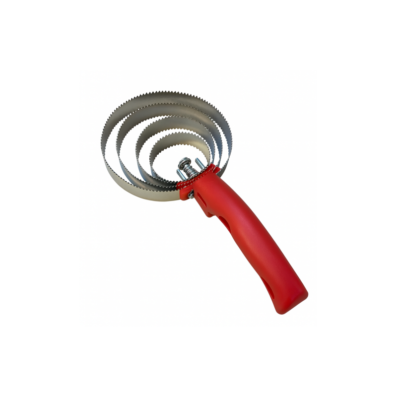 Спиральная скребница двусторонняя изготовленная из нержавеющей стали с пластмассовой ручкой. Пружинная защёлка даёт вожможность вращения кольцами. Мелкая прорезь зубов гребней идеальна по уходу за лошадьми и скотом.